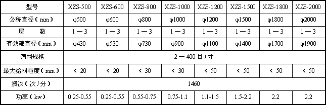 XZS系列旋振篩振動形式特殊,物料運動軌跡和振幅可調(diào),滿足不同工藝要求。任何顆粒、細粉、漿液均可篩分過濾;篩分效率高,既可概略分級,又可進行精細篩分或過濾;體積小、重量輕、安裝移動方便;網(wǎng)架設(shè)計獨特、換網(wǎng)容易,篩網(wǎng)壽命長、清洗方便、操作簡單;全封閉,無粉塵溢散,有利于改善勞動條件;粗、細料自動分級排出,能實現(xiàn)自動化作業(yè);出料口繞軸線360度任意設(shè)置,便于布置配套設(shè)備;耗能小,噪音低、滿足節(jié)能、環(huán)保要求;保養(yǎng)簡單,可單層或多層使用。