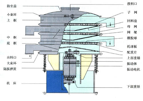 XZS系列旋振篩是在S49系列旋振篩的基礎(chǔ)上,吸收國內(nèi)外先進技術(shù),并采用先進的加工工藝而設(shè)計的高精度篩分過濾機械,它是以立式振動電機或?qū)S眉ふ衿鳛檎駝釉矗⑹秸駝与姍C(或激振器)上、下端裝有偏心重錘,可產(chǎn)生水平、垂直、傾斜的三次元運動,通過調(diào)節(jié)上、下偏心重錘的相位角,改變物料在篩面上的運動軌跡以達到篩分各種物料的目的。該產(chǎn)品適用于任何粉、粒、液的篩分和過濾的行業(yè)。廣泛用于化工、醫(yī)藥粉、液、涂料、顏料、化妝品、油脂、樹脂、陶瓷漿、粘土泥漿、生石灰、耐火材料粉末,冶金粉末、電磁粉末、研磨粉、果汁、飲料、食糖、食鹽、味精、調(diào)料、奶粉、淀粉、面粉、米粉、碳粉、石墨粉、錳粉、碳酸鋰、助溶劑、滅火劑以及環(huán)保行業(yè)的污水、廢水處理的工藝過程中的篩分、過濾。